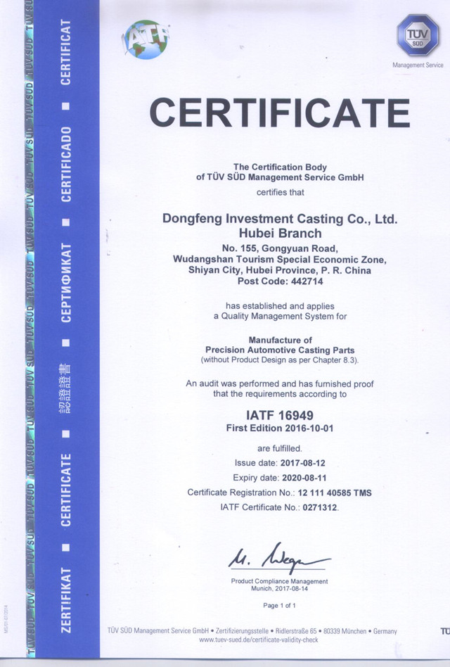 2017年通過(guò)IATF 16949:2016體系認(rèn)證